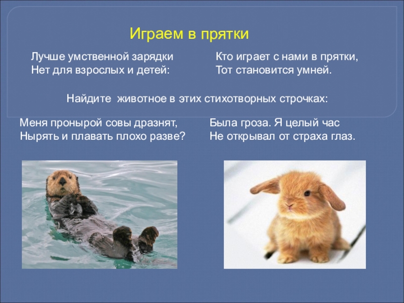 Найдите животное в этих стихотворных строчках: