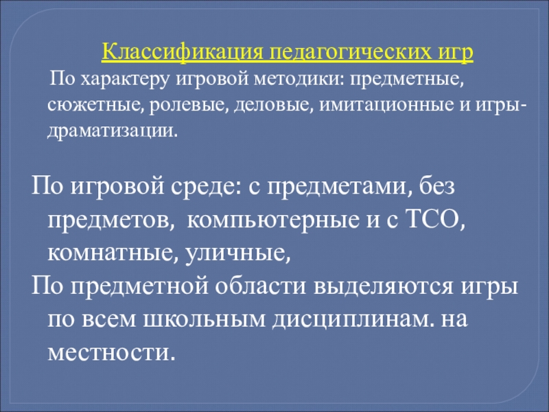 Слайд 6Классификация педагогических игр