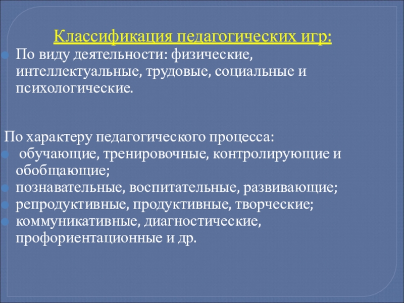 Слайд 5Классификация педагогических игр: