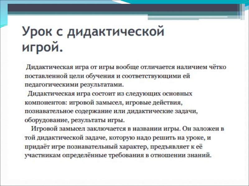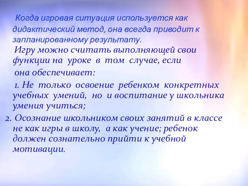 Слайд 40 Когда игровая ситуация используется как дидактический метод, она всегда приводит