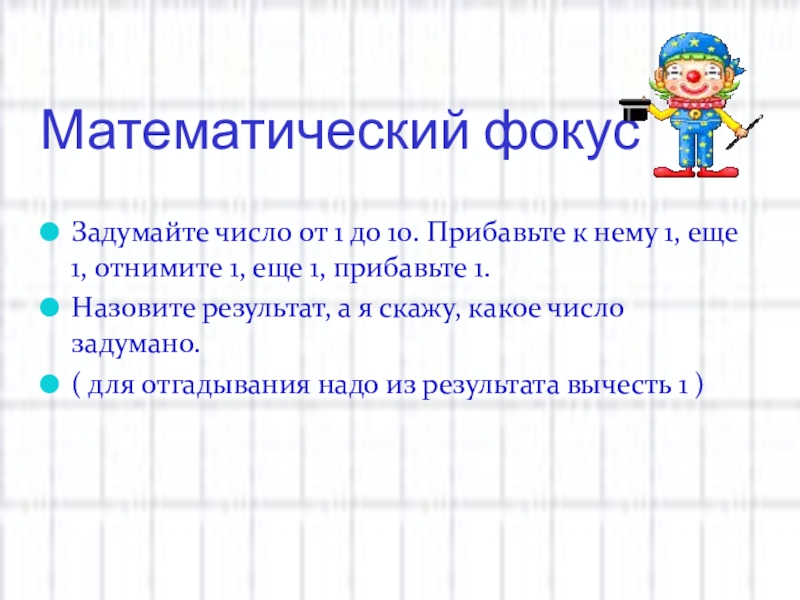 Задумайте число от 1 до 10. Прибавьте к нему 1,