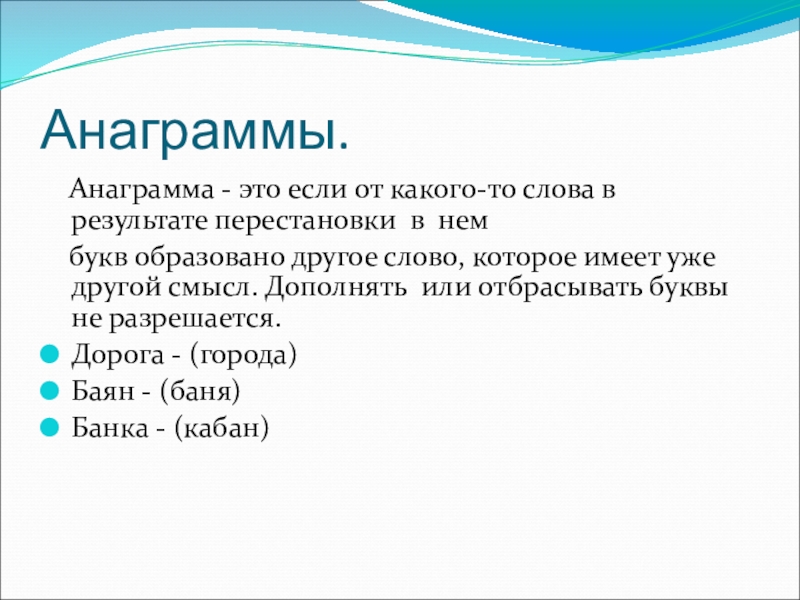 букв образовано другое слово, которое имеет уже другой смысл. Дополнять или отбрасывать буквы не разрешается.