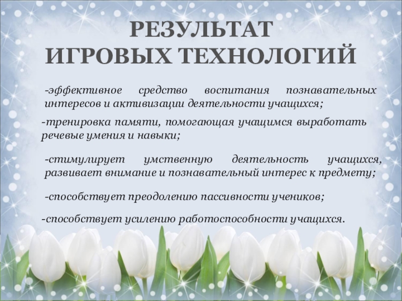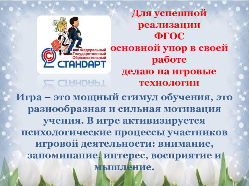 Слайд 3Игра – это мощный стимул обучения, это разнообразная и сильная мотивация