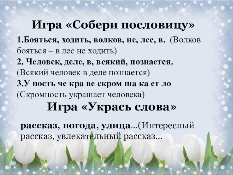 Слайд 9Игра «Укрась предложение»