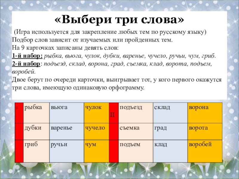 Слайд 12«Выбери три слова»