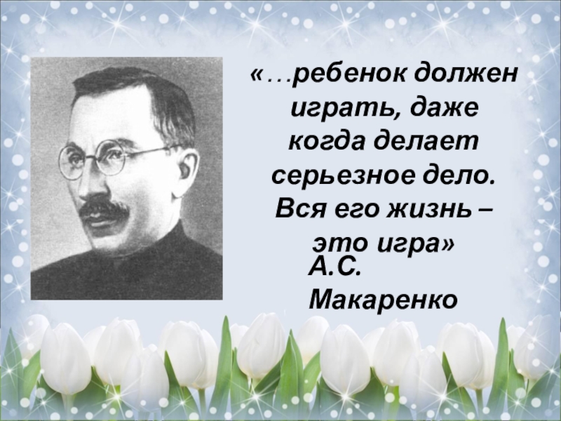 Слайд 2«…ребенок должен играть, даже когда делает серьезное дело. Вся его жизнь