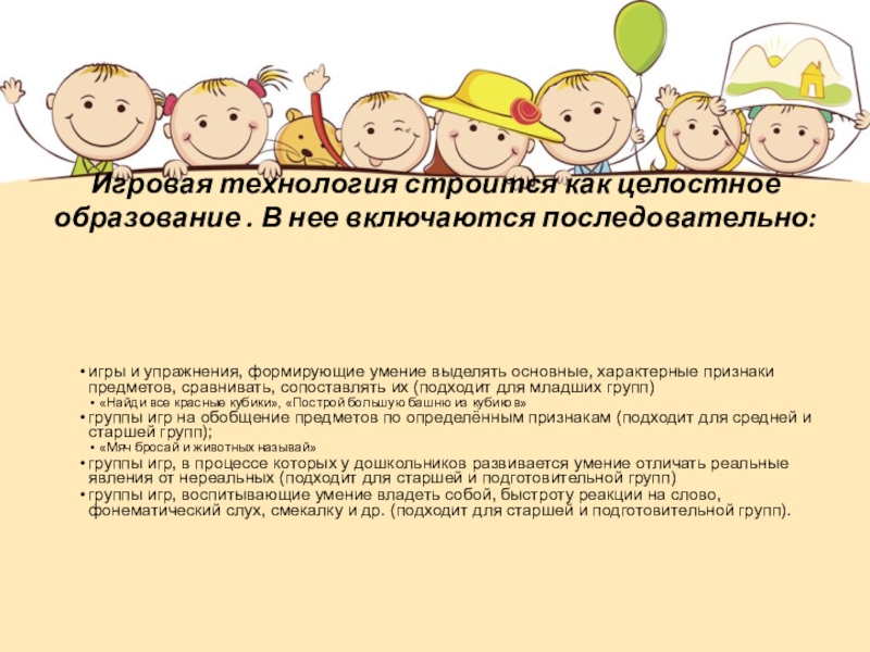 группы игр, в процессе которых у дошкольников развивается умение отличать реальные явления от нереальных (подходит для старшей и подготовительной групп)