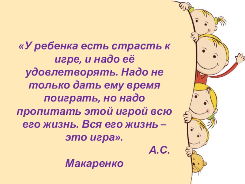 «У ребенка есть страсть к игре, и надо её удовлетворять. Надо