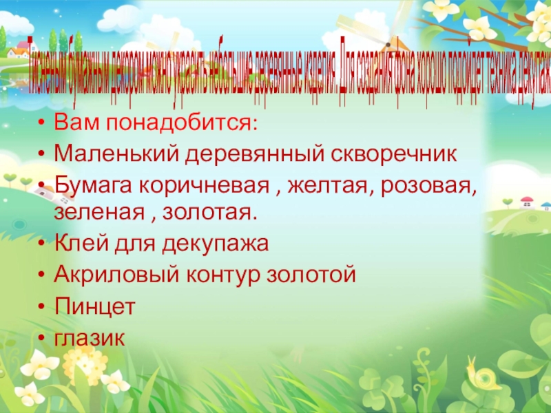 Бумага коричневая , желтая, розовая, зеленая , золотая.