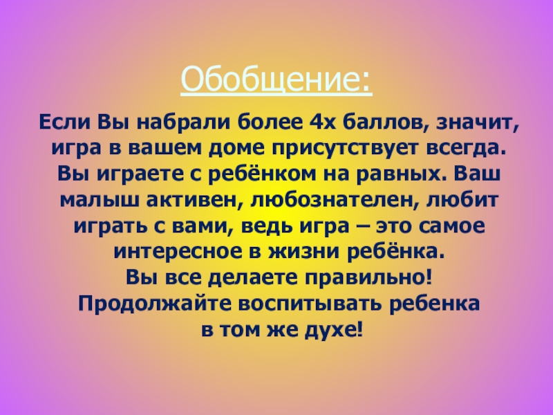 Если Вы набрали более 4х баллов, значит, игра в вашем доме