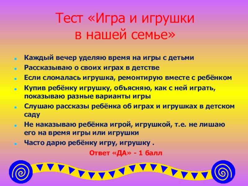 Слайд 11Тест «Игра и игрушки
