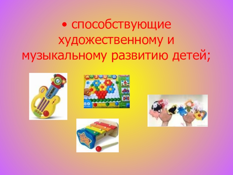 • способствующие художественному и музыкальному развитию детей;