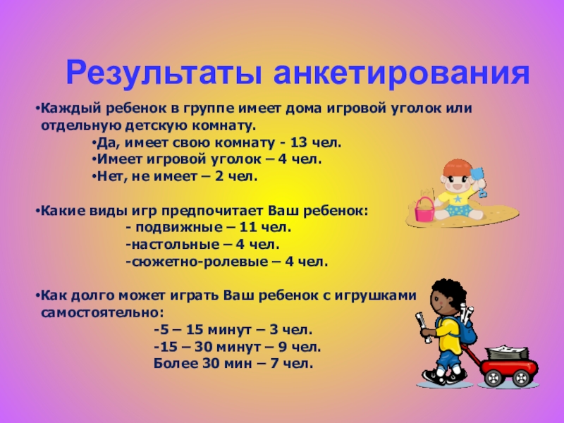 Как долго может играть Ваш ребенок с игрушками самостоятельно: