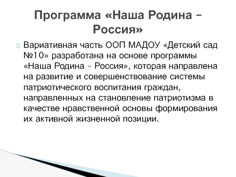 Программа «Наша Родина – Россия»