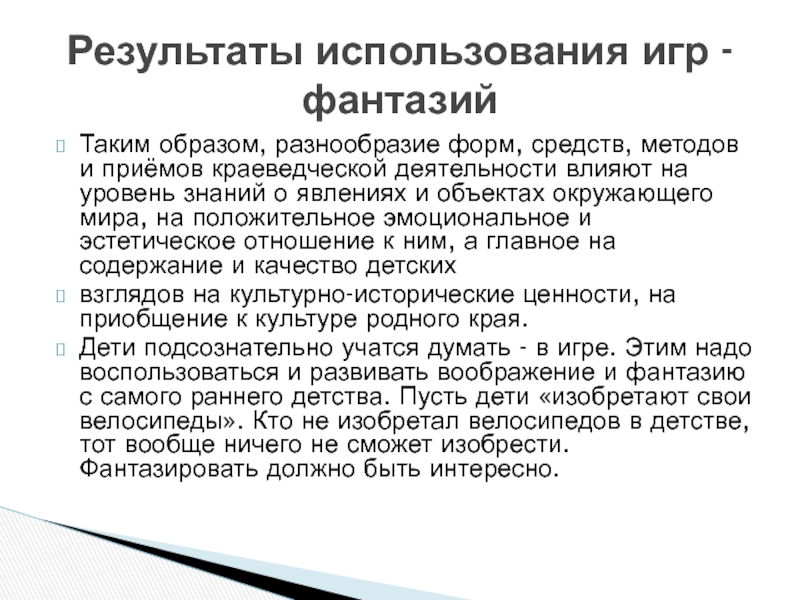 Результаты использования игр - фантазий