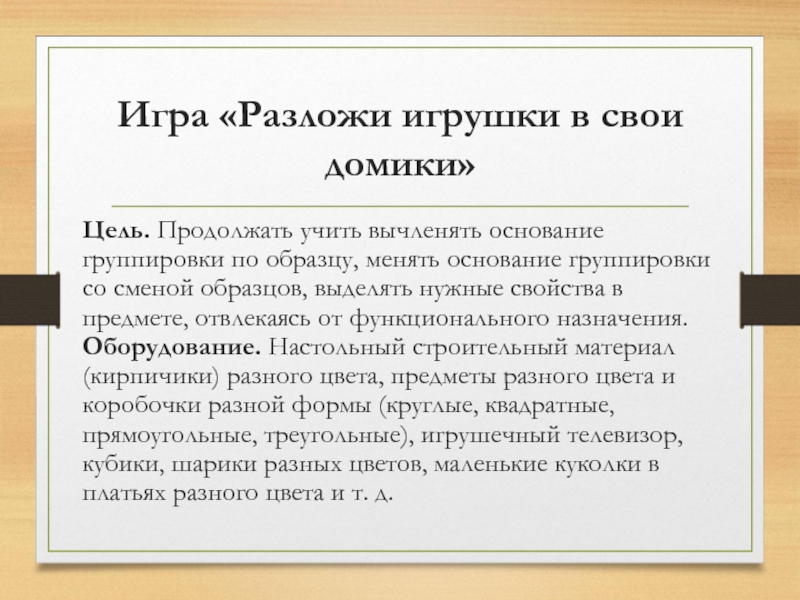 Слайд 14Игра «Разложи игрушки в свои домики»