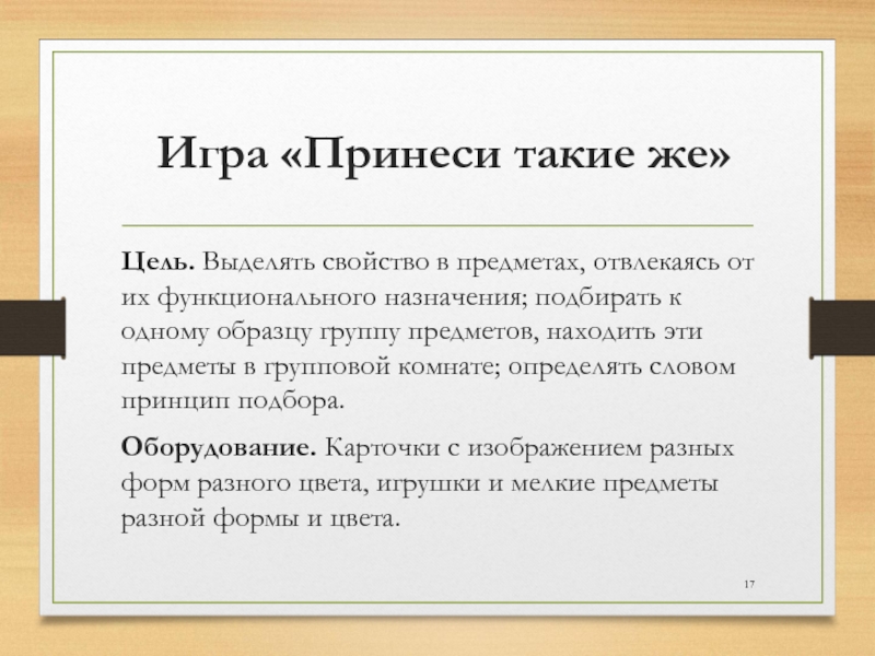 Цель. Выделять свойство в предметах, отвлекаясь от