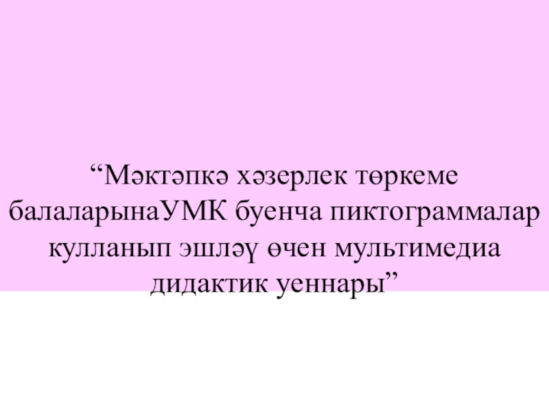 Слайд 1 “Мәктәпкә хәзерлек төркеме балаларынаУМК буенча пиктограммалар кулланып эшләү өчен мультимедиа дидактик