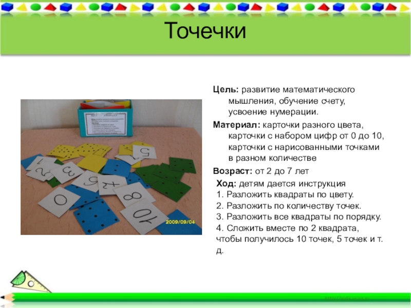в пространстве, познавательную деятельность ребенка, совершенствовать его сенсорные, интеллектуальные и творческие способности