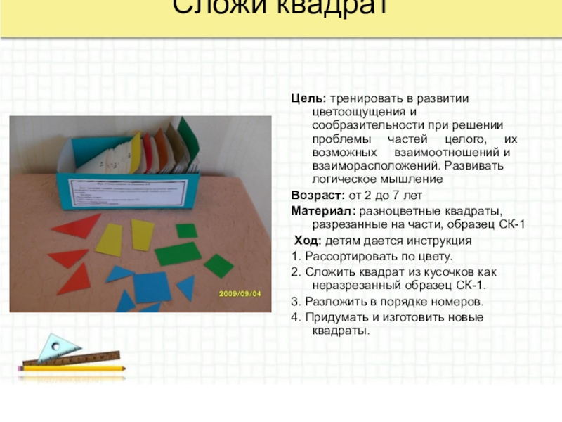 Материал: разноцветные квадраты, разрезанные на части, образец СК-1
