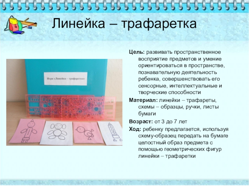 Материал: линейки – трафареты, схемы – образцы, ручки, листы бумаги