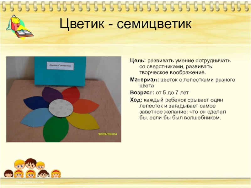 Ход: каждый ребенок срывает один лепесток и загадывает самое заветное желание: что он сделал бы, если бы был волшебником.