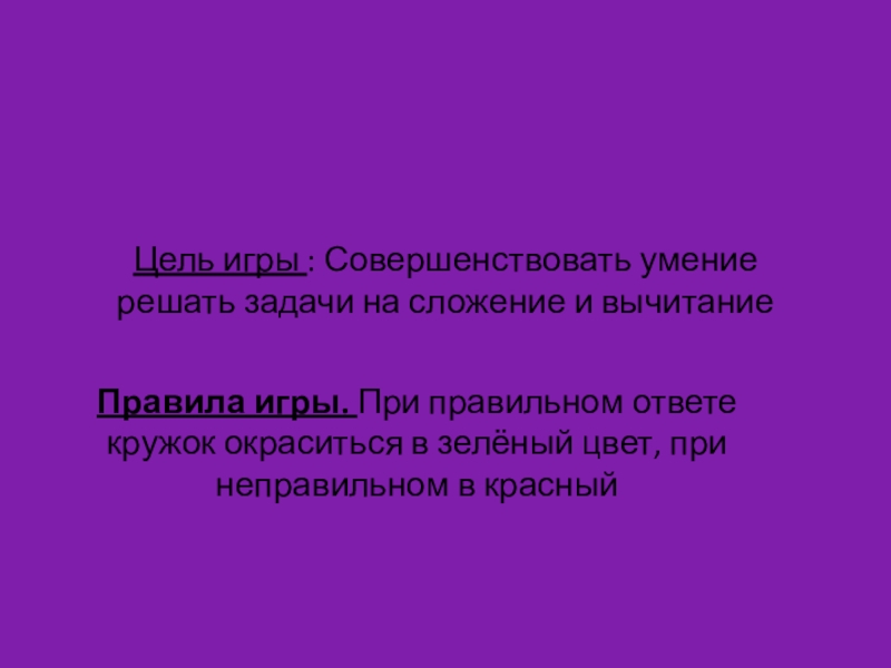 игры. При правильном ответе кружок окраситься в зелёный цвет, при неправильном в красный