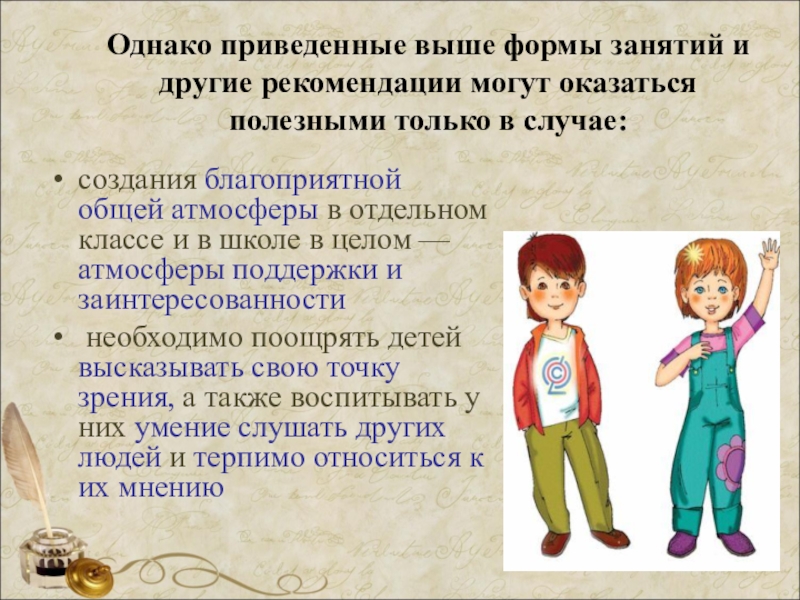 создания благоприятной общей атмосферы в отдельном классе и в школе в целом — атмосферы поддержки и заинтересованности