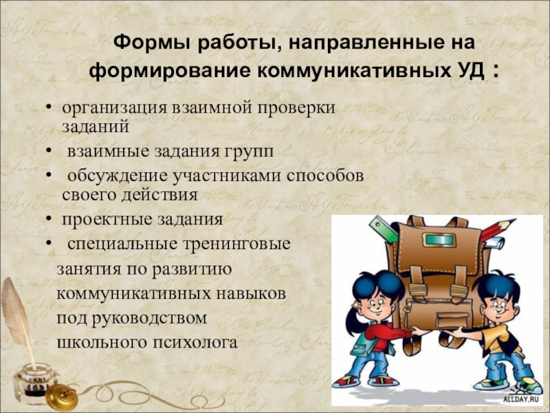 Это сайт презентаций, где можно хранить и обмениваться своими презентациями, докладами, проектами, шаблонами в формате PowerPoint с другими пользователями. Мы помогаем школьникам, студентам, учителям, преподавателям хранить и обмениваться учебными материалами.