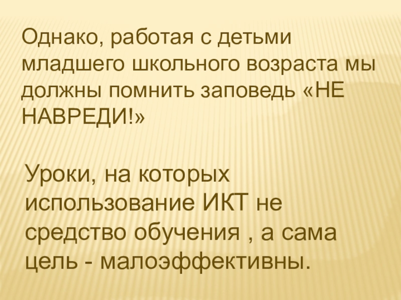 Уроки, на которых использование ИКТ не средство обучения , а сама цель - малоэффективны.