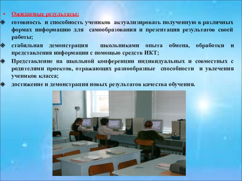 создать и организовать условия образовательной среды класса посредством ресурсов ИКТ;