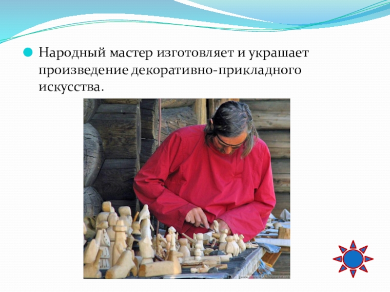 Слайд 9Народный мастер изготовляет и украшает произведение декоративно-прикладного искусства.