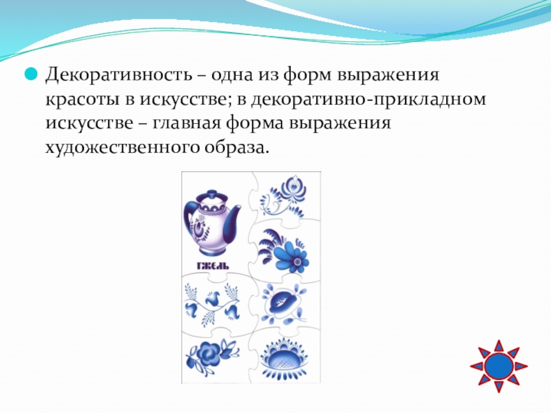 Слайд 70Декоративность – одна из форм выражения красоты в искусстве; в декоративно-прикладном