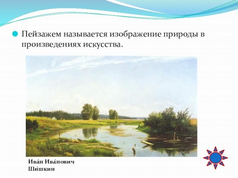 Слайд 4Пейзажем называется изображение природы в произведениях искусства.