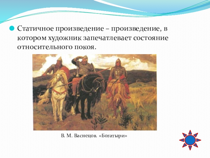 Слайд 64Статичное произведение – произведение, в котором художник запечатлевает состояние относительного покоя.