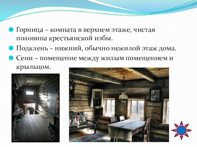 Слайд 52Горница – комната в верхнем этаже, чистая половина крестьянской избы.
