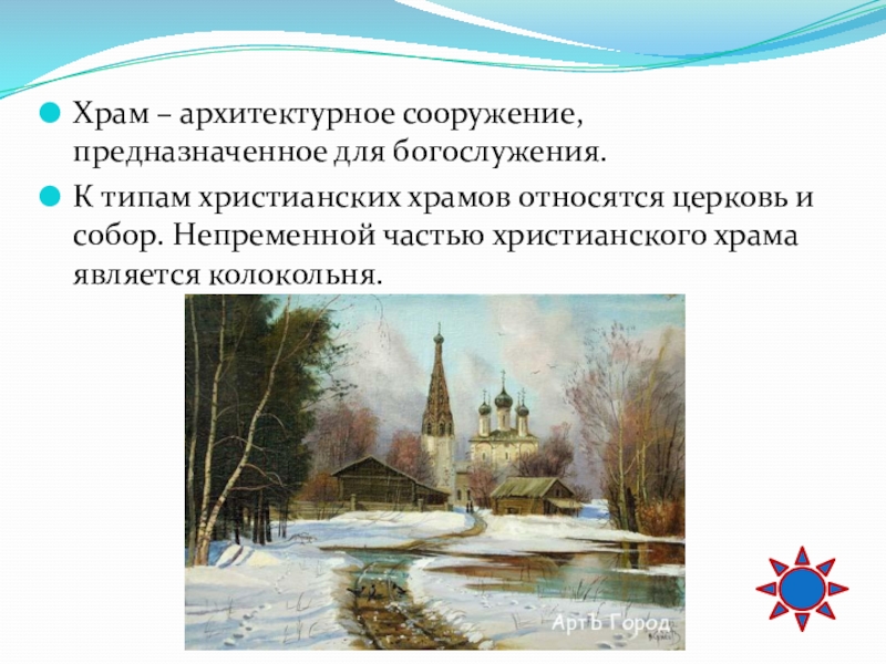 Слайд 37Храм – архитектурное сооружение, предназначенное для богослужения.