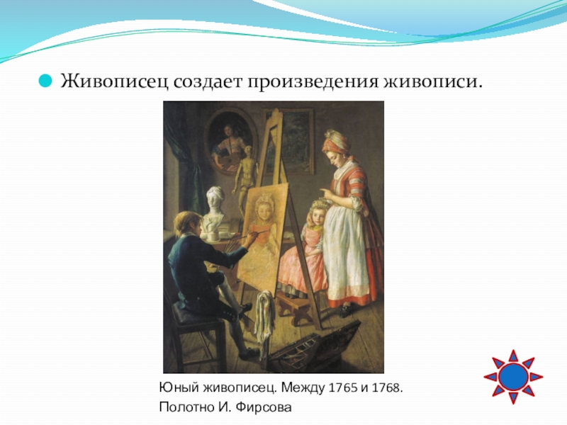 Слайд 8Живописец создает произведения живописи.