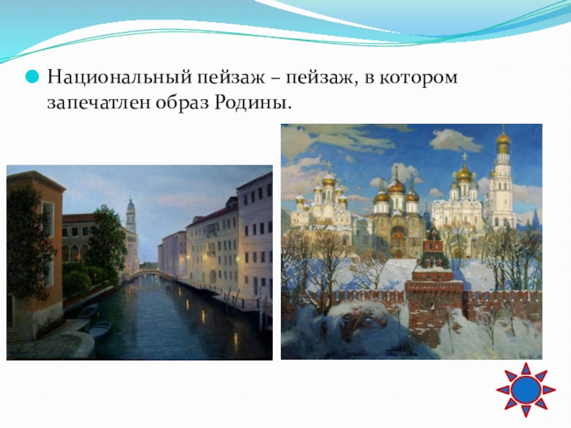 Слайд 61Национальный пейзаж – пейзаж, в котором запечатлен образ Родины.
