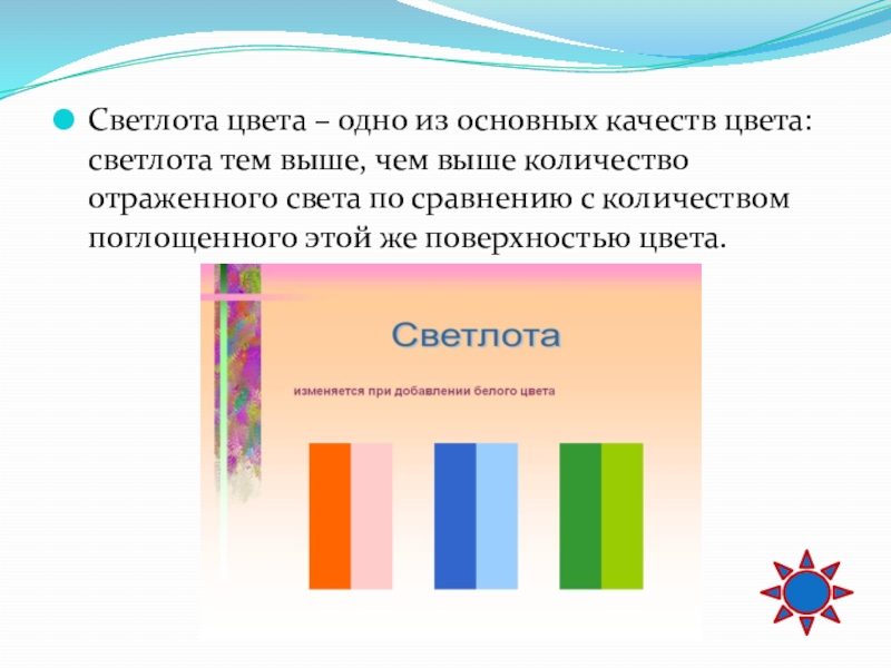 Слайд 45Светлота цвета – одно из основных качеств цвета: светлота тем выше,