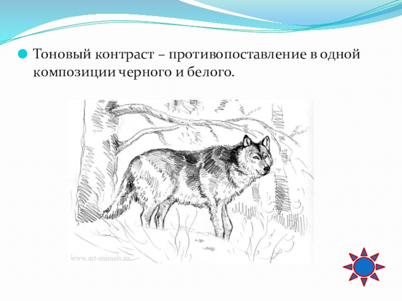 Слайд 34Тоновый контраст – противопоставление в одной композиции черного и белого.