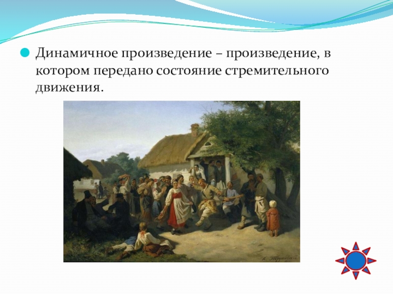 Слайд 65Динамичное произведение – произведение, в котором передано состояние стремительного движения.