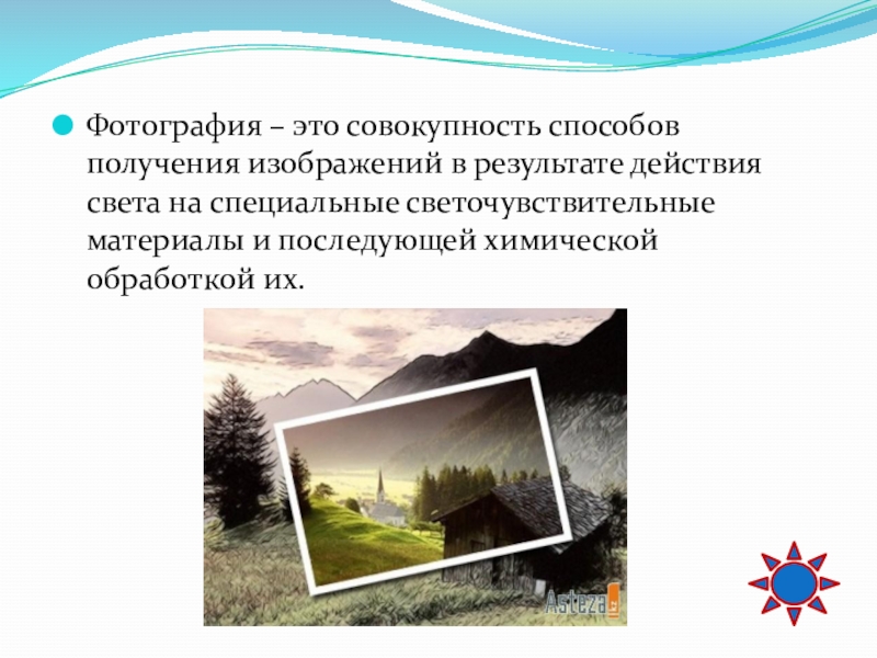 Слайд 35Фотография – это совокупность способов получения изображений в результате действия света