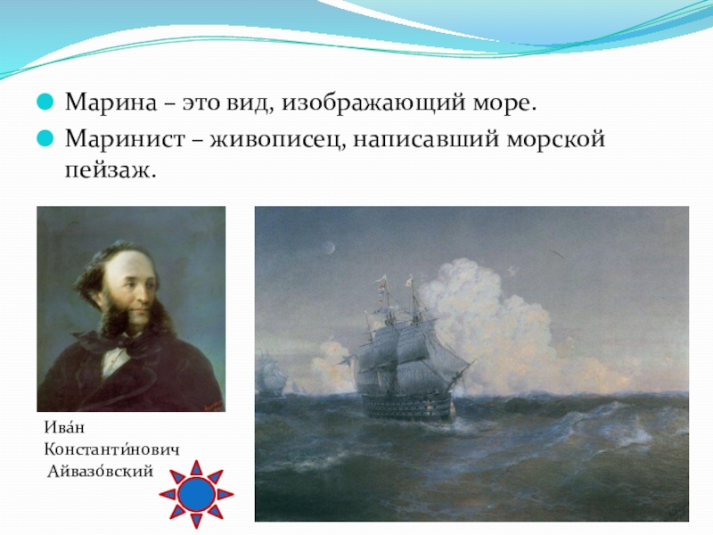 Маринист – живописец, написавший морской пейзаж.
