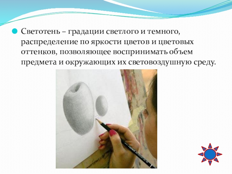 цветовых оттенков, позволяющее воспринимать объем предмета и окружающих их световоздушную среду.