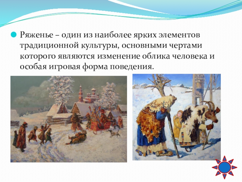 Слайд 56Ряженье – один из наиболее ярких элементов традиционной культуры, основными чертами