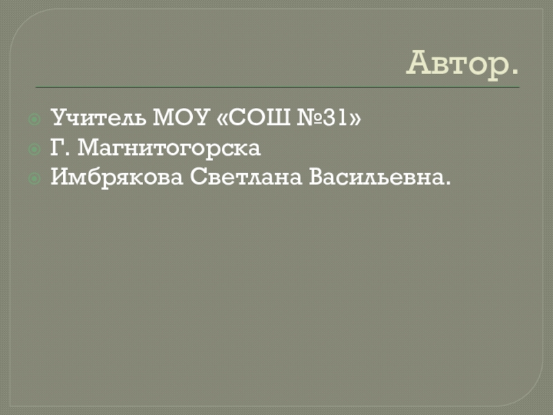 Автор.Учитель МОУ «СОШ №31»Г. МагнитогорскаИмбрякова Светлана Васильевна.