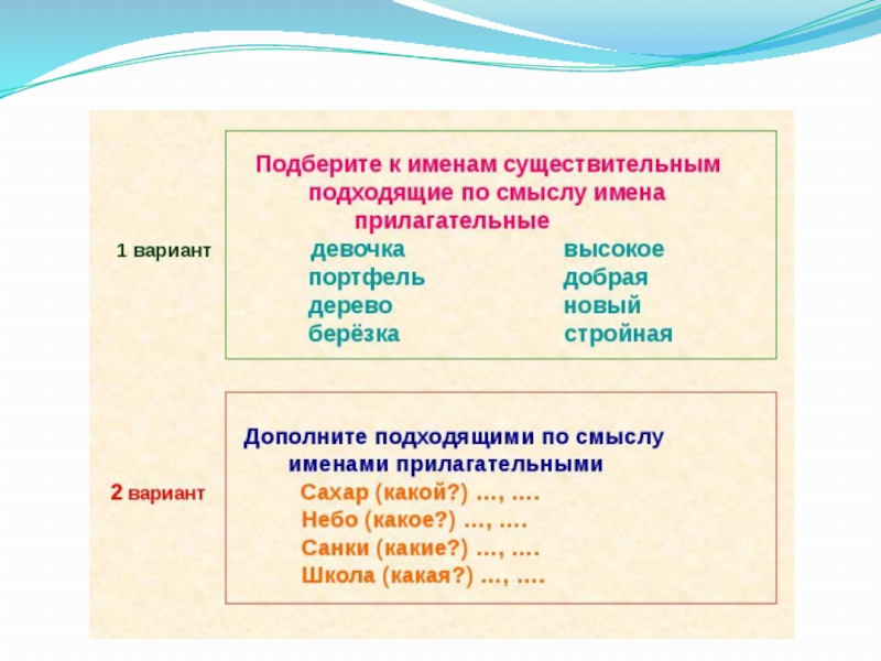 распознавать имена прилагательные в тексте, устанавливать связь имен прилагательных с именами существительными, определять род и число имен прилагательных, правильно писать родовые окончания.