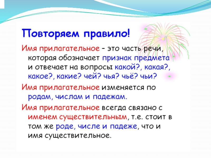 Тема. «Имя прилагательное как часть речи и его основные грамматические признаки.