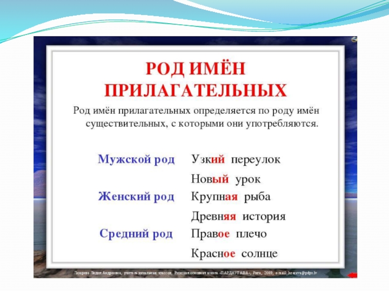 Слайд 1 Тема. «Имя прилагательное как часть речи и его основные грамматические признаки.